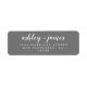 Chic, modern and simple wedding return address label with your names in white elegant hand written script calligraphy on a dark grey background. Simply add your names and address. Exclusively designed for you by Happy Dolphin Studio. If you need any help or matching products, please contact us at happydolphinstudio@outlook.com. We're happy to help you make your wedding the most beautiful day!