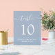 Signe de numéro de table en acrylique transparent et poussiéreux mariage avec "table" dans un script de calligraphie blanc élégant avec des swashes, numéro de table en élégante typographie serif blanche, vos prénoms unis par un coeur et votre date de réception. Créez chaque signe de numéro de table et ajoutez-le au panier un à la fois, puis retirez-le une fois que tous les numéros sont dans votre panier.
