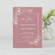 Chic Script Floral Outline Dusty Rose Wedding Invitation