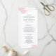 Elegant minimal wedding program features off-black chic script calligraphy and modern typography on a white background with a stylish touch of pink rose flower outline. Simply add your wedding program details. Exclusively designed for you by Happy Dolphin Studio. If you have any questions or requests, please contact us at happydolphinstudio@outlook.com. We're happy to help you make your wedding the most beautiful day!