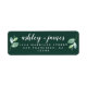 Chic, modern and simple wedding return address label with your names in white elegant handwritten script calligraphy with a stylish touch of green foliage on a dark green background. Simply add your names and address. Exclusively designed for you by Happy Dolphin Studio. If you need any help or matching products, please contact us at happydolphinstudio@outlook.com. We're happy to help you make your wedding the most beautiful day!