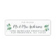 Mariage chic, moderne et simple étiquette d'adresse de retour avec le texte le futur M et Mme en écriture hors-noir élégant et une touche élégante de feuillage d'eucalyptus vert. Ajoutez simplement votre nom et votre adresse. Conçu exclusivement pour vous par Happy Dolphin Studio. Si vous avez besoin d'aide ou de produits correspondants, veuillez nous contacter à happydolphinstudio@outlook.com . Nous sommes heureux de vous aider à faire de votre mariage la plus belle journée!