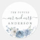 Chic Script Future Mr Mrs Dusty Blue Floral Classic Round Sticker