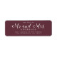 Chic, modern and simple wedding return address label with the text the future Mr and Mrs in white elegant script calligraphy on a burgundy background. Simply add your name and address. Exclusively designed for you by Happy Dolphin Studio. If you need any help or matching products please contact us at happydolphinstudio@outlook.com. We're happy to help you make your wedding the most beautiful day!