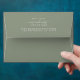 Chic, modern and simple wedding return address envelope with the text the future Mr and Mrs in white elegant script calligraphy on a sage green background. Simply add your name and address. Exclusively designed for you by Happy Dolphin Studio.