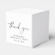 Chic graduation party favour box featuring "Thank You" in an elegant script and the grad's name and party date in simple modern typography.