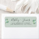 Chic, modern and simple wedding return address label with your names in off-black elegant handwritten script calligraphy on a milky green background with a stylish touch of green eucalyptus foliage. Simply add your names and address. Exclusively designed for you by Happy Dolphin Studio. If you need any help or matching products please contact us at happydolphinstudio@outlook.com. We're happy to help you make your wedding the most beautiful day!
