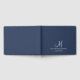 A simple elegant white script initial monogram navy blue wedding guest book for your reception. A keepsake from your wedding.