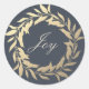 Chic Script Joy Gold Wreath Christmas Dark Blue Classic Round Sticker