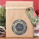 Elegant Christmas festive envelope seal or gift sticker with the text 'Joy' in chic handwritten script calligraphy on a charcoal dark blue background and a stylish touch of gold wreath. If you need any help or matching products please contact us at happydolphinstudio.com. Exclusively designed for you by Happy Dolphin Studio.