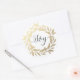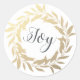 Chic Script Joy Gold Wreath Christmas White Classic Round Sticker
