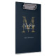 Simple Chic Script Metallic Navy Blue Gold Monogram Clipboard