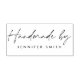 Put your signature touch on every handmade creation with this personalized "Handmade by" rubber stamp. Featuring a chic handwritten calligraphy script, this stamp elegantly displays "Handmade by" with your name in a sleek, timeless sans-serif font below. Perfect for small business owners adding a branded touch to their packaging or DIY crafters personalizing their gifts. Effortlessly elevate your work with this stylish and professional stamp.