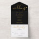 Chic Script Monogram Black And Gold Heart Wedding All In One Invitation