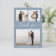 Chic Script Photo Collage Dusty Blue Wedding Thank You Card