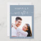 Modern dusty blue wedding invitation featuring your photo, "Happily Ever After" in simple white typography and a chic white calligraphy script with swashes and your first names and wedding date joined together by a heart. On the back, personalize your invitation in elegant white typography.