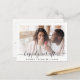 Modern save the date announcement postcard featuring your photo overlayed with "happily ever after" in a chic script with swashes and your names and wedding date joined together with a heart. On the reverse side, customize your save the date message and add your names in a signature-like script.