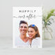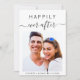 Modern wedding invitation featuring your photo, "Happily Ever After" in a mix of simple typography and a chic script with swashes and your first names and wedding date joined together by a heart. On the reverse side, personalize your invitation in elegant typography.