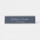 Professional and elegant blue desk name plate featuring your name showcased in a chic modern white signature script and your company or title in simple white lettering.