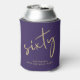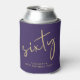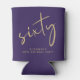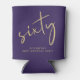 Fun purple can cooler for her 60th birthday party that features "sixty" in a chic gold script and her name in modern gold lettering.