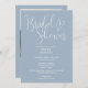 This dusty blue elegant script bridal shower invitation can be personalized with all your special event information and photo and registry QR code on the reverse. Designed by Thisisnotme©