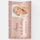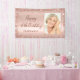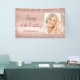 Elegant Modern Sparkle rose gold glitter metal Personalized Photo Happy 80th Birthday Party Banner. This Girly Adult feminine Birhday party decor featuring "Happy 80th Birthday" text in a stylish handwritten calligraphy script and custom name on blush pink or rose gold faux brushed metallic foil background with loose glam glitter frame around. Ideal for a feminine adult or girly milestone birthday celebration, this perfectly captures the essence of a modern rose gold or blush pink glitter sparkle girly birthday party. Perfect for a welcome banner or even a party decoration.