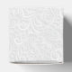 Elegant white on white filigree print pattern with your names in chic charcoal grey (or any colour) lettering, these 2" square party favour boxes are beautiful for wedding favours, bridal shower favours or any special occasion.