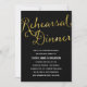 This elegant rehearsal dinner invite features gorgeous calligraphy, faux gold foil, and a chic black background.