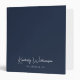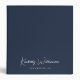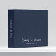 Chic dark blue binder with a minimalist vibe for your personal or professional business use featuring your name or brand in a stylish white signature script and your additional text below and on the spine in simple white lettering.