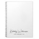Chic notebook with a minimalist vibe featuring your name or business brand in a stylish signature script. Add additional text below in simple modern lettering.