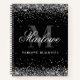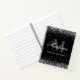Elegant Stylish Monogram Black White Grey Script Name glitter notebook bordered in faux silver glitter for your new home office, administrative and professional work, back to school, artwork sketches, recipe notes etc. Choose from a variety of insert types including wide rule, college rule, and blank for sketching.