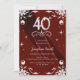 Chic Silver Floral Frame Burgundy 40th Birthday Invitation