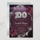 Chic Silver Frame Burgundy Roses 100th Birthday Invitation