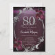 Chic Silver Frame Burgundy Roses 80th Birthday Invitation