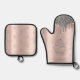 Chic Silver Glitter Drips Cupcake Rose Gold Oven Mitt & Pot Holder Set
