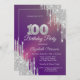 Chic Silver Glitter Drips Purple 100th Birthday Invitation
