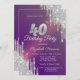 Chic Silver Glitter Drips Purple 40th Birthday Invitation