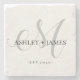Chic Silver M Monogram Script Name Wedding Date Stone Coaster