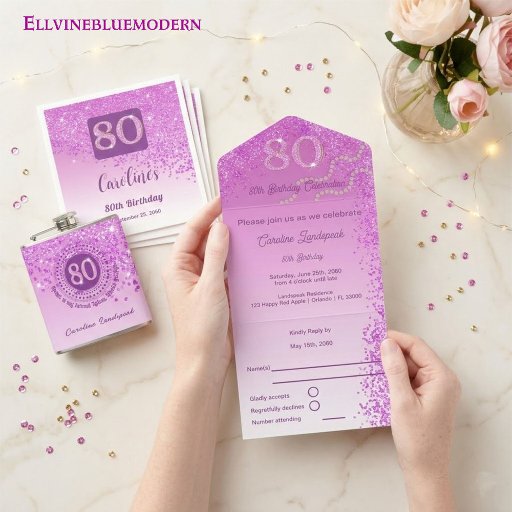 Refined Soft Pink & Gold Glitter | 80th BirthdayDesigned by Florence C
