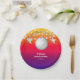 Elegant birthday paper plate featuring silver hanging star, Christmas ball and string lights bulb on a multicolored paint gradient background.