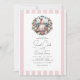 Celebrate in timeless style with this chic "Social Club" bachelorette party invitation featuring a blush pink and white striped front with elegant florals, tennis accents, and a luxurious European-inspired aesthetic. The reverse includes a detailed itinerary framed by a sophisticated champagne glass and floral arrangement, perfect for a refined weekend of exclusive activities like tennis, beach outings, or brunches. Ideal for brides seeking a vintage, members-only vibe with a touch of glamour.