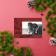 Elegant deep red and gold foil photo holiday card featuring a chic, hand-drawn botanical sprout. Choose your favourite photo to complete the card and wish your friends and family a lovely season with a chic touch!