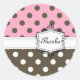Cute and Classy Sticker designs by The Frisky Kitten. The modern two-tone polka dot pattern personalized Sticker design by The Frisky Kitten has a stylish pink,white and brown polka dot pattern background with monogram area for personalization.Add your own personal touch by adding your own text. The Frisky Kitten is your go-to online source for the most trendy,cute,classy,funky,cool and personalized designs on modern paper goods,stylish business cards,and exclusive gifts. Visit us as : www.zazzle.com/thefriskykitten*