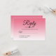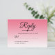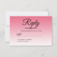 A chic, pretty summer pink ombre Sweet 16 RSVP card with tropical pink ombre pattern fading onto a white background. The text "Reply" in black is set in modern script. Perfect for a glamourous Sweet sixteen, perfect for her, the fashionista who loves modern pattern, tropical luxury and glam. Exclusively designed for you by Happy Dolphin Studio.