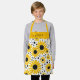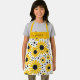 Modern kids apron with a sunflower pattern and a feminine, hand lettered script name. Personalize with your name.