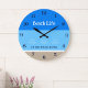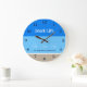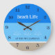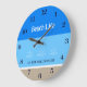 Chic Tan Blue Stripes Family Name Beach House Large Clock