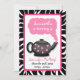 Stylish party invitations for little girls designed with a zebra print & pink border, a decorated black teapot, and pink steam emerging from the teapot. | #teaparty #kids #birthday #childrens