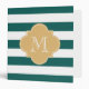 Beautiful dark teal and white stripes with a gold quatrefoil monogram. The perfect binder for wedding planning, recipes, photo albums, work, school, and more! To customize the font and font colour, click on the "Customize It" button below the product image.