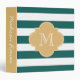 Chic Teal and Gold Striped Custom Monogram Binder