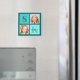 Chic 2 photo square birthday party magnet favor for a trendy girl's birthday. Celebrate your child's birthday with two beautiful photographs of them on this add your own photograph favors with turquoise squares. Add their name and age under Happy Birthday.